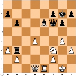 Vanuit de diagramstelling volgde: 46. Tf6+ Kg7 47. Dc2?? Dg1! (47. ... De3+ ligt voor de hand maar leidt tot niets) 48. Thg6+ Kh7 49. Dd2