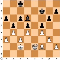 Wellicht begon Peter het zichzelf hier (zie diagram links) moeilijk te maken met 37. Dd1? omdat Zwart nu de Dame naar e4 kan spelen en Wit goed moet opletten dat die niet binnenkomt op bijv. g2, h1 of b1. En als Wit de Dame op e4 slaat, krijgt Zwart natuurlijk een ijzersterke vrijpion. Het beste plan voor Wit in de diagramstellig was dus wellicht om zijn Dame op de e-lijn te houden en de zwarte Dame hoe dan ook niet toe te laten op e4, en als Zwart zijn Dame toch op e4 zou weten te krijgen, die hoe dan ook nooit te slaan. Zwart speelde zijn Dame natuurlijk naar e4, waarna Peter enkele zetten later de beslissende fout maakte door die Dame te slaan en Zwart een vernietigende vrijpion te geven.