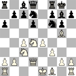 Zo op het eerste gezicht staat wit sterk en blokkeert zwarts rokade. Rolf attaceert zeer effectief en verrassend met Pd8 (!!!). Er dreigt nu meteen c6. Wits loper zit vast. Wit trekt zijn Dame nog schielijk terug naar 10.Db3 c6. De witte loper is echter niet meer te redden en loopt zich hoe dan ook vast in de pionnen. Er volgde 11.0-0 Lxc3. Met een stuk meer wist Rolf de partij knap uit te spelen (via rokade, stukken afruilen, oploop van zijn pionnen). Een hele mooie overwinning.