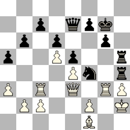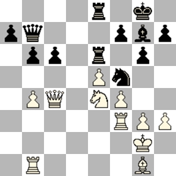 Wit zit aardig in de problemen. Alles op h3! Met vele stukken is Wit op dit veld gebonden. Wat heeft meer bewegingsvrijheid. Als de pion op g6 gaat lopen komt er een probleem bij. 19.Tc6 is lijkt een oplossing want na 19... g5 20.Dc3 g4 21.Txc7 maar na 21….Dg4! wint Zwart. Toch wekt Zwart niet de indruk te weten hoe dit aan te pakken. Dus niks doen en kijken wat Zwart doet! 19.Df3 Th8 20.De3 T4h5 Maar voordat we de plannen kunnen zien maakt wit (in tijdnood) de beslissende fout 21 Le2?? En na 21... Txh3+ 22.Txh3 Txh3+ verliest Wit de dame en geeft op.