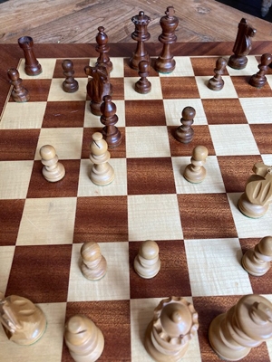 Met schaken heb ik ook zoiets. Vroeger speelde ik onbevangen, los van speelsystemen en ik "deed maar wat" op het bord. Met jeugdige overmoed en schaak-elan wist ik regelmatig leuke resultaten te boeken. Anno nu durf ik weinig op het schaakbord, ik zie vooral en allereerst de gevaren en bedreigingen en veel minder de kansen en mogelijkheden. Iedere tegenstander wordt een "angstgegner". Verdedigen staat voor op, voorzichtig zijn en risico’s mijden is het devies. Veilige en bekende zetten kiezen. Typisch een teken van ouderdom. Als je nu nog profijt zou hebben van die voorzichtigheid kun je daar vrede mee hebben, maar de schaaknederlagen rijgen zich met die schaakstijl aaneen. Braaf en voorzichtig spelen leidt tot niets. Weg daarmee. Het tij moet keren. Het roer moet om. Maar hoe?