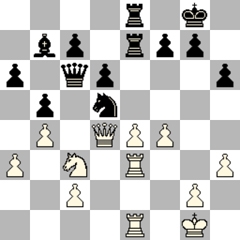 Als eerste was Paul klaar, die speelde aan bord 6 tegen Hans van Leeuwen (niet onze oud-clubgenoot met dezelfde naam). In de partij kwam het Italiaans met 3... h6 op het bord. Na zet 9 was er sprake van een volledig symmetrische stelling. Toen er daarna eindelijk wat stukken van het bord verdwenen, kwam er iets meer leven in de partij, maar eigenlijk had geen van beide spelers echt een significant voordeel. Dat veranderde bij zet 22, waar Wit een kans liet liggen om de partij naar zich toe te trekken. Zie diagram.