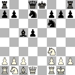 Zwart heeft net met zijn loper teruggenomen op c5, waar slaan met het paard nog wel meeviel voor hem. Nu kwam Jos al zo'n beetje gewonnen te staan met 9.Te1+ Kf8 10.Le3 Ld6?! 11.c4 Lb4 12.Pbd2 Tc8 13.Db3 en de activiteit van de witte stukken en de slechte positie van de zwarte koning betekenen dat de partij in computertermen al uit is (+2,7). Jos gaf zijn tegenstander later in de partij nog één kans, maar speelde het verder goed uit.