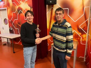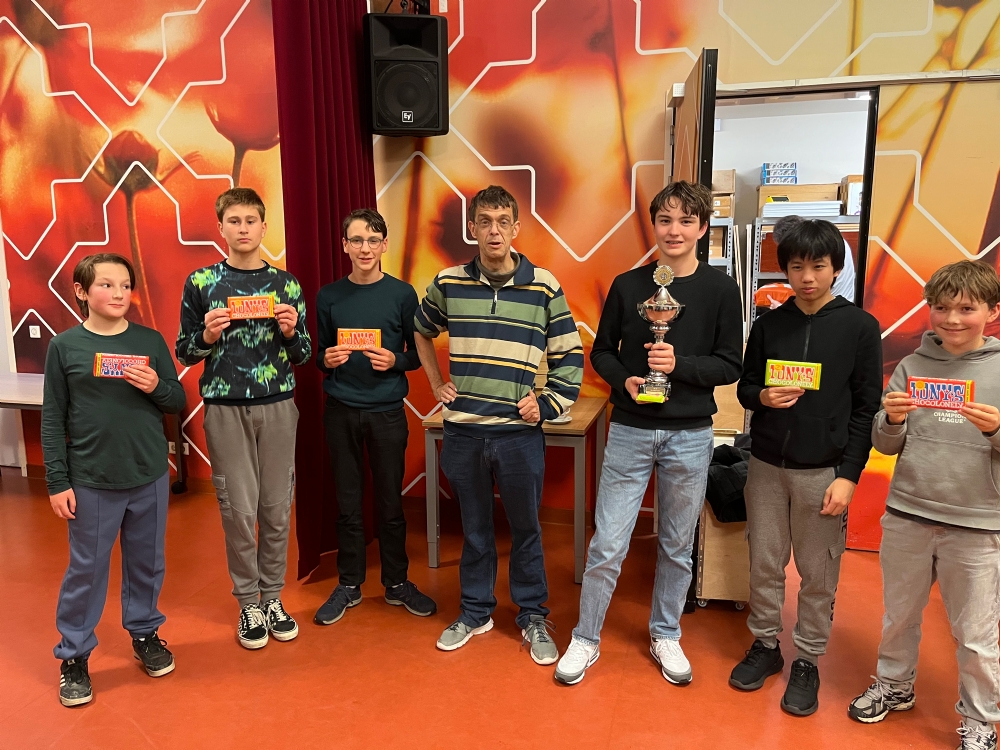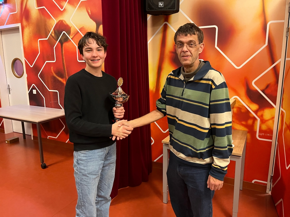 Een bijzondere vermelding is hier op zijn plaats voor Pijke Kerckhaert. Hij miste de aanvang van de eerste ronde, maar scoorde daarna een perfecte score van 5 uit 5. Pieter, meer dan 20 jaar betrokken geweest bij de jeugdafdeling van SMB, zorgde ervoor dat de kampioensbeker bij Gijs uit kwam!