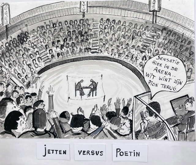 In het artikel van de Gelderlander blikt Jan onder ander terug op zijn Russische tegenstanders van weleer als Kasparov, Karpov, Spasski, Tal. Leuk om te lezen. Hij kent door al die contacten de Russische cultuur, mentaliteit en de historische ontwikkelingen in het land. Hij ging ook in op het conflict tussen Rusland en Oekraine en vreesde dat het oorlogsgeweld nog jaren zou kunnen duren. De Westerse regeringsleiders hebben volgens hem te weinig power om een omslag en vrede af te dwingen. Hij suggereerde enigszins cynisch dat Poetin ook op het gebied van schaken de westerse regeringsleiders in een schaakcompetitie makkelijk zou verslaan. Personen van zijn leeftijd hebben in Rusland namelijk allemaal goed leren schaken, het was daar onderdeel van de algemene ontwikkeling. In het Westen was dat veel minder het geval.