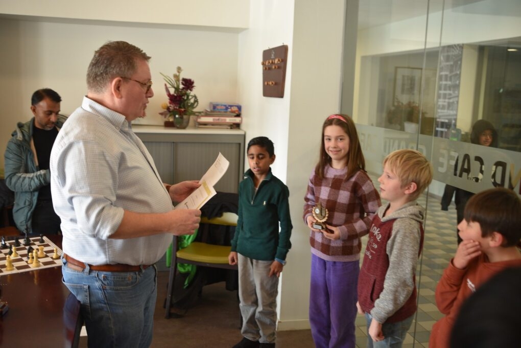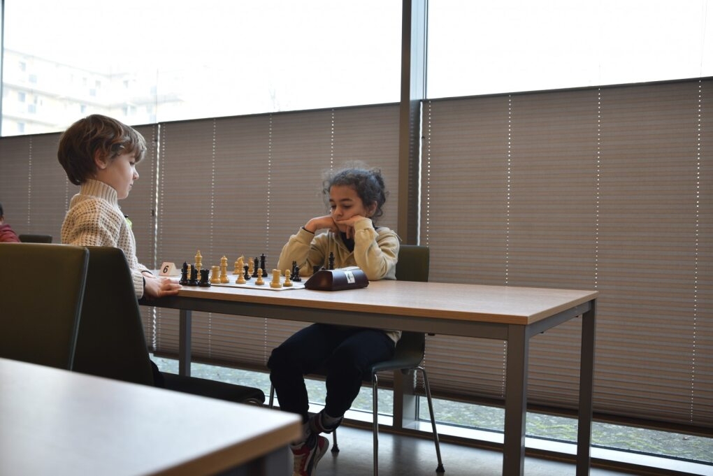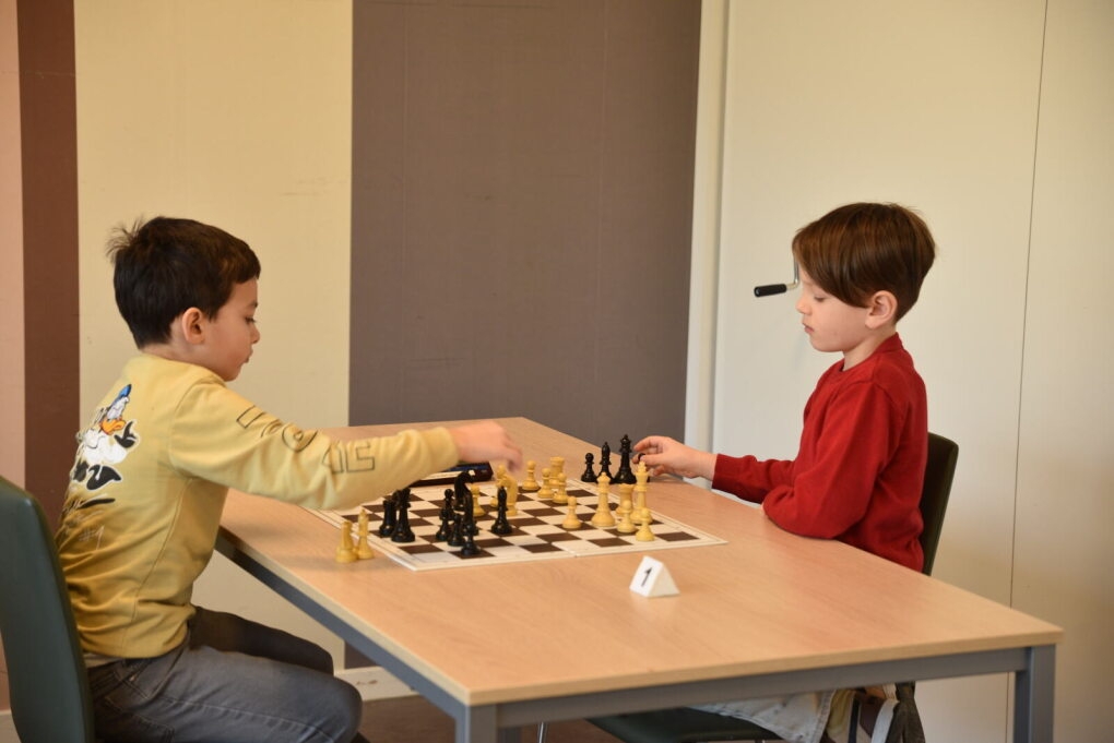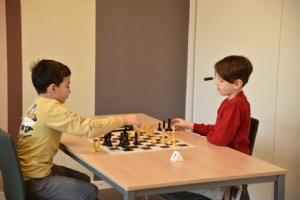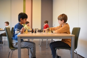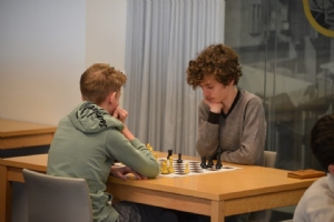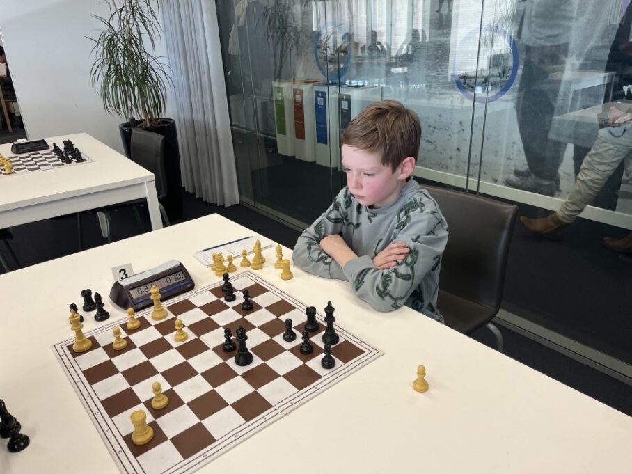 De kleinste groep was de categorie E (jaar 2016) en had maar 4 deelnemers en hier werd een dubbele Round Robin toernooi gespeeld. Hier had zich ook één meisje gemeld en daarmee had ze haar NK-ticket bij aanvang al binnen. Maar ze was duidelijk niet alleen gekomen om een ticket op te halen: met een score van 6 uit 6 (!) behaalde Hilde Kruijssen (ASV/ASA) werd ze de duidelijke winnaar. Jonne Pihlajamaa (Schaakstad Apeldoorn) werd tweede en verkreeg met zijn resultaat een NK-ticket. Derde werd Yash Sardjoe (ASA).