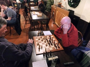 De partijen van Peter en Henny gingen ook verloren. Ik heb het verloop van hun partijen, omdat ik zelf een lange partij speelde waar ik al mijn aandacht voor nodig had, niet meer meegekregen. Er is vast het nodige mis gegaan maar wat precies horen we volgende week wel. We stonden dus rond 22.45 uur met drie nul achter. Heel jammer.