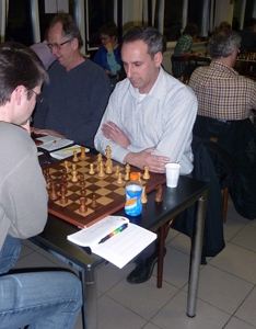 Bart in t-shirt en zonder hond zou de kou trotseren en vandaag toch ook voor een punt gaan zorgen. Jacques stond een vol stuk voor in het eindspel, zijn tegenstander had geen compensatie. Huub stond beter, Peter ook, Oscar had ook moeten winnen en Jos kreeg 2 pionnen voor een paard.