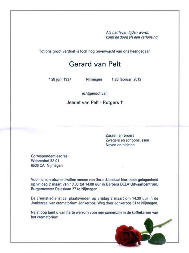 Gerard van Pelt is gistermiddag met spoed opgenomen en vannacht overleden. Opnieuw verliest SMB een icoon.