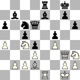 Uiteraard moet het paard verdedigd worden of weggaan. Wit vergat dit echter en speelde 20.O-O?? Txf3. Vervolgens verloor hij nog meer materiaal en uiteindelijk gaf hij maar op.