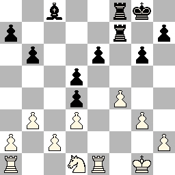 Vanaf hier gaat mijn paard een mooie manoeuvre maken, terwijl mijn tegenstander iets op de damevleugel probeert, wat echter weinig constructief is en mijn plan niet tegenhoudt. 22.Pf2! Tc7 23.Tac1 b5?! 24.Pg4 e5?! (een pionoffer om de loper te activeren, maar het is niet goed) 25.Pxe5 a5?! 26.Pf3! a4?! 27.Pxd4 axb3 28.axb3 b4 29.Pe6 (de afwikkeling) 29... Lxe6 30.Txe6 Tfc8 31.Tb6 Txc2 32.Txc2 Txc2 33.Txb4. En dit eindspel won ik op zet 54. Het was voor mijn tegenstander zijn eerste nederlaag als ASV'er en voor mij de eerste externe overwinning dit seizoen, dus ik was er erg blij mee.