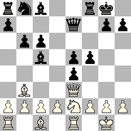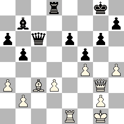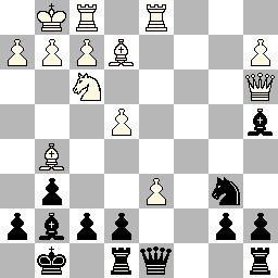 Wit speelde hier het "bevrijdende" 16.d4, waarna ik (natuurlijk) vrij snel tot 16... exd4 besloot. Jelle zei later in de auto dat hij deze stelling vluchtig bekeken had en hij het vreemd vond dat er een paard op d4 was beland. Tja, natuurlijk waarom heb ik hier geen 16... exd3 e.p. gespeeld? De dame blijft dan instaan en na Dxe3 heb ik La6 of nog beter Td8. Antwoord: ik heb het niet eens overwogen/gezien ('s nachts kwam deze en-passant zet pas in me op). In de parij won ik weliswaar een 2e pion na 16... exd4 17.Pxd4 Df6 18.c3 Pd7? 19.Dg5 Lxd4 20.cxd4 Dxd4, maar na 21.Td1 Df6 22.Dxf6 Pxf6 23.Lg5 La6 24.Td6 had wit voldoende tegenspel gekregen. Het vervolg zal ik u besparen, maar er kwam nauwelijks nog een fatsoenlijke zet uit mijn vingers in de tijdnood van mijn tegenstander. Als een bezetene ging ik meevluggeren, gaf drie pionnen weg, en ook nog een volle toren. Deze laatste gebeurtenis werd door Valentijn die naast mij het drama had zien voltrekken van een cruyffiaans commentaar voorzien: 'Je moet ook geen toren op de kleur van de loper zetten.' Je hebt helemaal gelijk Valentijn, ik weet ook niet of er nog schaaktoekomst is voor mij."