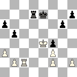 De wedstrijd was toen zo goed als bekeken, aangezien ik nog steeds gewonnen stond. Helaas ging er wel iets mis bij Matthijs aan bord 6. Peter Hamers had blijkbaar zo veel tegenspel weten te verkrijgen, dat Matthijs niet meer de goede zetten wist te vinden en uiteindelijk zijn voorsprong omgezet zag worden in een nederlaag. Het beslissende halfje werd binnengehaald door onze topscorer Jelmer. In de partij gebeurde niet bijzonder veel, al miste Wit in het eindspel misschien ergens een kans. De eindstelling (hier getoond) lijkt inderdaad remiseachtig, maar ik weet niet zeker of ik al remise aan zou bieden als de tegenstander bij aanname verzekerd is van de matchwinst.