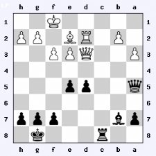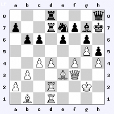 Na 1. … Lxd4 2. Dxh5+ besefte zwart dat hij een stuk ging verliezen en gaf op.