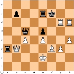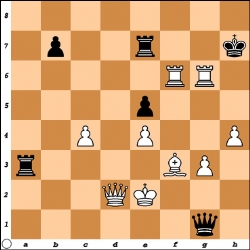 46. Lh5! Ke8 47. Tg8+ Kd7 48. Dxb7+ en spoedig mat 46. Lh5! Txb3 47. Tg5+ Kf8 48. Th8#