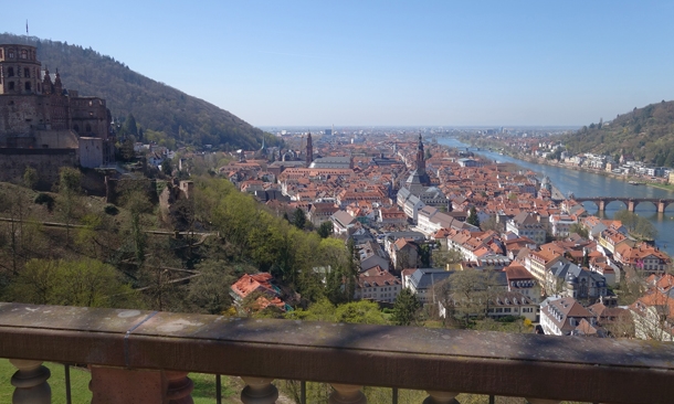 Twee weken geleden was ik met mijn vrouw een weekje op vakantie. Aanleiding was een verlaat kraambezoek bij mijn nichtje en haar man in Heidelberg. We zouden daar vervolgens enkele dagen in de mooie omgeving en verderop langs de rivier de Neckar gaan wandelen. Zo geschiedde. We werden door de familie heel hartelijk ontvangen, bewonderden de goedlachse baby Ion en kregen van de trotse ouders een rondleiding bij de romantische kasteelruïne die de stad domineert. Heidelberg is een prachtige stad, een van de weinige grotere Duitse steden die in de oorlog gespaard is gebleven van bombardementen. De "Altstadt" is helemaal intact en 17e, 18e en begin 19e -eeuwse gebouwen, straten en pleinen zijn een lust voor het oog. Niet voor niets dat ongeveer 1 miljoen bezoekers per jaar de stad komen bekijken.