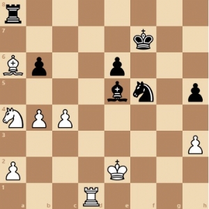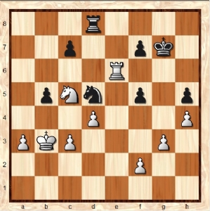 Zwart besloot nu na lang nadenken tot 42. … fxe (43. Pxe6+ Kf6 44. Pxd8), twee pionnen gevend dus, met het idee om snel de witte koningsvleugelpionnen aan te gaan vallen met de koning. Dit was een goede praktische beslissing en ook de computer kan zich erin vinden, aangezien de witte koning ver van de koningsvleugel af staat en het paard op d8 een paar zetten nodig heeft om weer mee te doen.