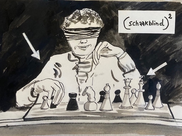 Rolf van Geel aan bord 2 speelde een hele aparte partij. Misschien dat Rolf t.z.t. zijn partij via een diagram nog eens wil toelichten en wat uitvoeriger er verslag van wil doen. Nu is vooral te melden dat hij won. Wel heel erg gelukkig en dat zijn eigenlijk de mooiste winstpartijen. Zijn tegenstander overzag een simpele dubbelaanval in 1 zet met zijn dame tegen de koning en toren van Rolf. Als dat gespeeld zou zijn was het meteen uit. Beide spelers waren schaakblind in deze situatie. In het eindspel (wel spannend en kansen aan beide kanten) promoveerde Rolf als eerste zijn vrijpion. De ASV-er promoveerde ook maar liep vervolgens meteen in een matnet. Rolf was de rest van de avond een en al glimlach, van oor tot oor. Hij bleef lang nog oreren (vol ongeloof) over de knulligheid en schaakblindheid van hemzelf en zijn tegenstander ten aanzien van het gespeelde spel. Maar wel steeds met een lach op zijn gezicht.