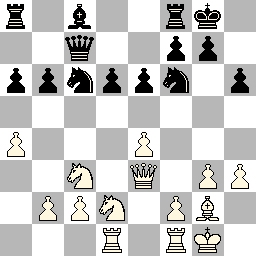De partij van Lucas aan het eerste bord. Lucas zelf hier aan het woord: "Ik trof hun sterkste speler Frank Schleipfenbauer (rating meer dan 2100). Desondanks kon ik in de opening aardig meekomen. Na 17 zetten kwam de volgende stelling op het bord. Wit speelde 17.Pd2 met het plan zijn paard naar c4 te brengen. Ik was me wel bewust van de druk op d6, maar vergat volledig dat Pc4 ook pion b6 zou aanvallen en speelde dus niets vermoedend 17... Lb7 (?) 18.Pc4 met pionverlies. Na afloop dachten Frank en ik dat dit sowieso al een lastige stelling was voor mij, maar de computer laat zien dat 17... Tb8 18.Pc4 d5! kan, waarna Zwart weinig problemen heeft. In de partij verloor ik zowel b6 als d6 en hield het op zet 30 voor gezien. Geen schande natuurlijk om te verliezen van deze tegenstander, maar dit soort blunders overkomt me de laatste maanden te vaak. Als iemand tips heeft om dit te verhinderen, hou ik me aanbevolen."