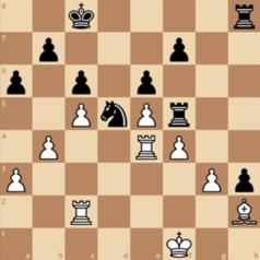 Het is sowieso al goed voor Wit, maar hij sloeg hier met 22... Lxd5? meteen terug op d5, waar iets als 22... Pf6 meer kans had geboden. Nu won ik met 23.Txb6! Dxb6 24.Pxd5 een kleine kwaliteit. Hij had in het vervolg misschien iets hardnekkiger kunnen verdedigen dan hij deed, maar ik sta hier al op winst. Toen ik zijn c-pion had veroverd en verbonden vrijpionnen op d6 en e5 had ondersteund door een ijzersterk loperpaar tegen zijn machteloze toren, hield hij het voor gezien. Zo scoorde ik het winnende punt."