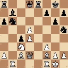 En zo was de stand na drie wedstrijden nog mooi in evenwicht. Op dat moment hadden Wilbert, Lucas en ik echter een veelbelovende stelling, dus het leek allemaal onze kant op te gaan vallen. Vlak na Frans was Wilbert klaar. In de vorige twee rondes wist hij helaas geen vol punt te noteren, maar afgelopen donderdag was hij weer eens ouderwets op dreef. Al had dat nog wel wat voeten in de aarde: "Toen mijn tegenstander in een klassiek geval van 'sla de verdediger' een loper verloor in de tiende zet, was onze partij nog geen tien minuten bezig. Ik telde het punt al en verwachtte een kwartier later aan de bar te zitten. Mijn tegenstander dacht daar anders over. Met gewaagd aanvalsspel dwong hij me geconcentreerd te blijven spelen. Ter illustratie de stelling nadat hij met wit gezet heeft: 22.b5. Er zijn veel verkeerde zetten en maar een paar goede. Slaan van de b-pion leid bijvoorbeeld via 22... cxb5 23.Pxb5 Dxc5 24.Da8+ tot eeuwig schaak en ook een poging de c-pion te slaan werkt niet: 22...Pe4 23.bxc6 Lxc5 24.Da8+ Db8 25.Pb5 leidt tot verlies van een toren. Het optimale Thd8 vond ik niet, maar Db8 was goed genoeg. Nadat een paar zetten later zijn matdreiging verdwenen was, kon ik snel mijn extra materiaal gebruiken en gaf mijn tegenstander op."