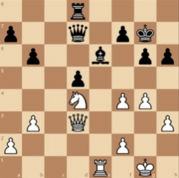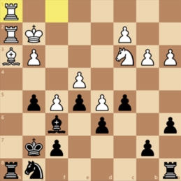 Een zeldzame tegenvaller dus voor ons, maar nog steeds een voorsprong van 2,5-1,5 met nog twee ijzers in het vuur. Zoals zo vaak was het Lucas die van zich liet spreken op het juiste moment. Dit heeft hij erover te zeggen: "Ik speelde aan het tweede bord tegen Ivo Olthof. Ik kwam prettig uit de opening en had de hele avond een fijne stelling om te spelen, hoewel er objectief nog niet zoveel aan de hand was tot een paar zetten hiervoor (zie diagram).