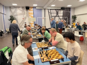 Zaterdag 4 oktober begon de KNSB competitie voor het seizoen 2025-2026. Nou is ons eerste team al twee seizoenen achter elkaar tweede geworden in de vijfde klasse, dus de ambitie voor dit seizoen is duidelijk: versterkt door onder andere een aantal doorgestroomde jeugdspelers moeten we dit jaar gewoon weer voor het kampioenschap gaan. De eerste horde was vandaag te nemen: de eerste ronde tegen ASA 2, zeker niet het minste team van de poule. Ondergetekende moest als vervangend teamleider het met een door afmeldingen stevig gewijzigd team maar klaarspelen.