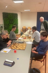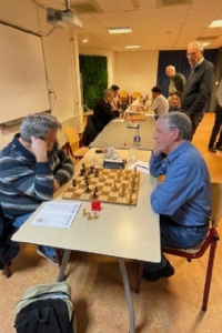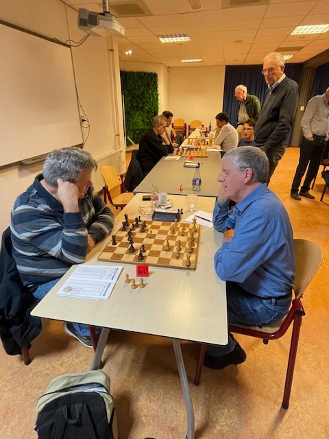Eindstand PION 2 versus SMB 2: 3-3. Met deze stand valt te leven, Ik geloof dat het eindresultaat een redelijk evenwichtig beeld geeft. Tijdnood was de ene partij in ons voordeel (bij Wilbert) in een andere (bij Charles) in ons nadeel. De andere remisepartijen, geen van allen spectaculair, toonden terecht die uitslagen. De winst van Eric hielp ons aan het gelijke teamresultaat, dus hij was zeker "man of the match".