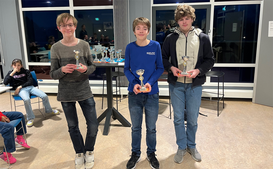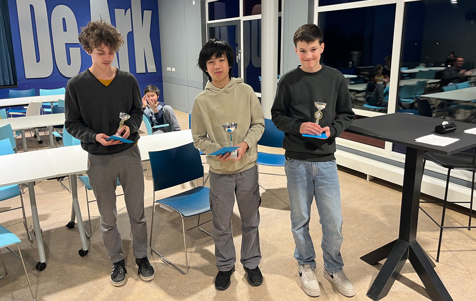 Zaterdag 20 december was het weer zo ver: onze Grand Prix voor jeugd tot 18 jaar vond weer plaats en werd gespeeld in de Ark van Oost. Het aantal deelnemers lag met 61 een stuk hoger dan vorig jaar. De jongste deelnemer was 7 jaar, de oudste 17.