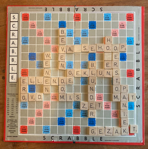 Deze week speelde ik een potje scrabble met mijn vrouw en de gedachten over een slecht gespeelde schaakpartij mijnerzijds zaten, door Rolfs scherpe, humorvolle en kritische analyse, nog vers in mijn herinnering. Dat vertaalde zich duidelijk op het scrabble bord. Er vormden zich steeds woorden die verwezen naar een mislukte partij. Mijn vrouw liet zich meeslepen in het woorden leggen binnen deze categorie. Zie het beeld op de overzichtsfoto van het bord. (P.S: Bij onze huisregels inzake scrabble mogen afkortingen, dus gvd mag.)
