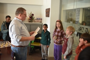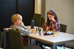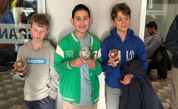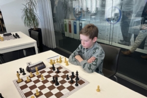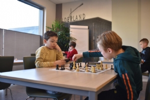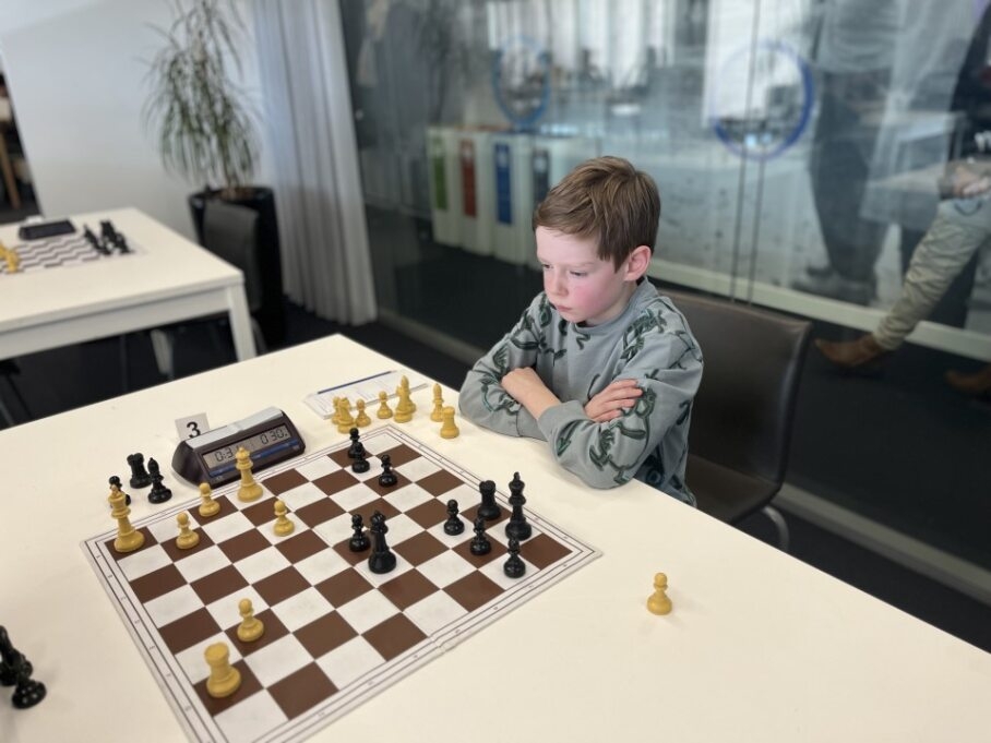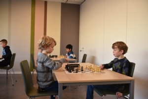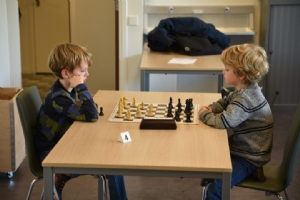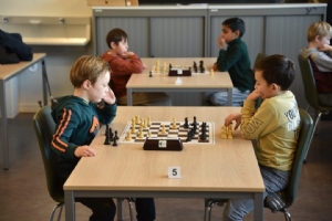 De kleinste groep was de categorie E (jaar 2016) en had maar 4 deelnemers en hier werd een dubbele Round Robin toernooi gespeeld. Hier had zich ook één meisje gemeld en daarmee had ze haar NK-ticket bij aanvang al binnen. Maar ze was duidelijk niet alleen gekomen om een ticket op te halen: met een score van 6 uit 6 (!) behaalde Hilde Kruijssen (ASV/ASA) werd ze de duidelijke winnaar. Jonne Pihlajamaa (Schaakstad Apeldoorn) werd tweede en verkreeg met zijn resultaat een NK-ticket. Derde werd Yash Sardjoe (ASA).