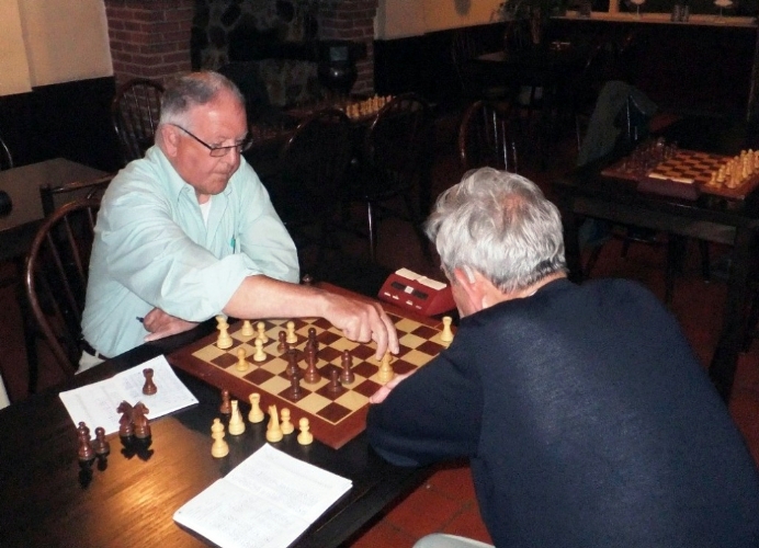 Jaap Houben - Guido van Mierlo Open Nijmeegs Kampioenschap, 31 mei 2011 1.e4 e5 2.Pf3 Pc6 3.d4 exd4 4.Lc4 Pf6 5.e5 d5 6.Lb5 Pe4 7.Pxd4 Ld7 8.Lxc6 bxc6 9.0-0 Lc5 10.f3 Pg5 11.f4 Pe4 12.Le3 0-0 13.Pd2 Pxd2 14.Dxd2 Lb6 15.Pb3 Te8 In een eerste reactie gaven beide spelers aan dat zwart beter 15... f6 had kunnen spelen. Het verdedigingsplan van zwart bleek, zoals gespeeld, nu te traag. 16.Lc5 Lf5 17.Tae1 Le4 18.Dc3 De7 19.Tf2 Lxc5 20.Pxc5 f5 21.Pxe4 dxe4 22.Dxc6 Ted8 23.g4 fxg4 24.Dxe4 Tab8 25.c3 Dc5 26.Kg2 Tb6 27.f5 Th6 28.Tee2 1-0