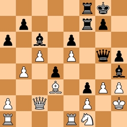 Evert, die naast me zat, bood in een gelijkwaardige stelling remise aan. Zijn tegenstander wilde echter nog even doorspelen en dat bleek achteraf een goede keuze van hem. Zijn dame kon binnendringen op de open c-lijn en via een dubbelaanval, schaak en aanval op Everts paard, veroverde hij het paard en de partij. Heel jammer, want de partij was de hele avond constant in evenwicht. Een enkele basale zetcombinatie overzien is genoeg voor verlies. Bij de junioren van SMB wordt hier op de wekelijkse lesavond al op gehamerd. (Zie trainingsboekje Stappenplan nummer 2, hoofdstuk "De dubbele aanval".) Een korte opfrisles voor senioren kan geen kwaad. Evert had echt niet hoeven te verliezen.