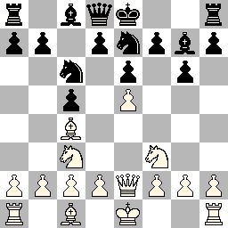 In alle openingsboekjes van het schaken staat dat je in het begin van de partij niet 2 keer moet zetten met hetzelfde stuk. Je ontwikkelt dan onvoldoende je stukken en dat is fout. Mijn tegenstander trok zich echter van die basistheorie niets aan en ik deed vervolgens te routineus mijn eigen "gekende" openingszetten. Gevolg: na de eerste 10 zetten stond het bord daardoor in vuur en vlam en had mijn tegenstander de winst voor het grijpen. In de na-analyse heb ik gezien dat ik eigenlijk na 8 zetten verloren stond. Achter het bord spelen is echter nog iets anders dan een na-analyse. Ik vond telkens een overlevingszet en mijn tegenstander wist ook niet door te bijten waardoor ik kon ontsnappen. Ik geef hier de eerste 6 openingszetten: 1.e4 c5 2.Pc3 g6 3.Lc4 e6 4.Pf3 Lg7 5.e5 Pc6 6.De2 Pge7 en kom dan bij de diagramstelling. Mijn tegenstander speelde nu 7.Pe4, ik wilde mijn pion verdedigen en speelde b6. Dat is fout. Ik had moeten rokeren. Een pion geven om erger te voorkomen. Er volgde 8.Pd6 Kf8 9.Pg5 Pxe5. Mijn tegenstander speelde toen 10.f4, maar dit is niet de beste zet. Hij had moeten inslaan met een van zijn paarden op f7 en daarna, na paard maal paard, zijn dame moeten spelen naar Df3 (dubbele aanval op toren en f-pion). Ik antwoordde op f4 met Pf5, volgens mij de enige zet die ik nog had. De ergste kou was uit de lucht toen mijn tegenstander met zijn paard insloeg op c8 en ik terug nam met Txc8. Mijn koning stond natuurlijk miserabel en een van mijn torens ingesloten. Maar ik stond wel een (schamele) pion voor en gaandeweg de partij wist ik de nodige dreigstukken af te ruilen. Door een afgedwongen dameruil kon ik eindelijk ook onder de druk uit die van het begin van de partij op mijn f-pion en koningsstelling stond. Daarna mijn ingeklemde toren bevrijden door de loper af te ruilen en een luchtgat voor mijn koning te maken. Bovendien was mijn pionnenstructuur door de ruil van de stukken sterk geworden en was de vijandelijke koning zwak verdedigd waardoor ik makkelijk schaak kon blijven geven. Het toreneindspel wat overbleef heb ik, denk ik, goed gespeeld. Door heen en weer te manoeuvreren won ik een 2e pion, creëerde twee verbonden vrijpionnen in het centrum en gaf mat op de 51e zet. Zucht... het was langs de afgrond. Stand: 3-0