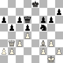 Hier wist ik alsnog het psychologische tikje uit te delen dat ik een zet eerder had nagelaten: 22.Pe4. Ik vermoedde wel dat dit niet heel erg goed was (de computer is er ook niet erg van onder de indruk), maar het is toch een lekker zetje om te spelen, met name om bovengenoemde psychologische redenen. Zwart kan uiteraard niet slaan met zijn gepende pion op d5 en als hij zijn dame wegzet, gaat het paard naar het mooie veld c5, waar dit moeilijk te verjagen is, onder meer omdat de zwartveldige loper van zwart al van het bord is. Wil zwart dit voorkomen dan moet deze zijn loper geven, en zo geschiedde: 22... Lxe4.