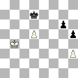 In zijn vooruitgespeelde partij aan bord 4 had Peter van de Berg (met zwart) in het eindspel goede kansen op winst. Met zwart aan zet is deze stelling gewonnen voor zwart, maar heel eenvoudig is het niet, zeker niet als je onder tijdsdruk staat. Zwart speelde Kd6. Peter over deze zet: "Kd6?? met deze zet gooi ik de winst weg. Geboden was de pionnen op g en h te zetten waarna promotie onvermijdelijk is. Bijv. 57... g5 58.Kc4 h4 59.Kd3 g4 60.hxg4 (60.Ke2 g3 61.Ke1 Kd6) 60... h3 58.Kc4 g5 59.Kd4 g4 enz. De winst was uit te rekenen maar daar heb je tijd voor nodig. Aangezien ik die niet zo veel meer had dacht ik met Kd6 niks te bederven. Vervolgens gebeurde er wat vreemds. De enige zet voor wit was Kc4. Alleen wit bleef ontspannen kijken zonder een zet te doen. Ik keek naar de ook aanwezige Huub Jansen, die zorgelijk keek, maar ik begreep niet waarom. Vervolgens keek ik hoeveel tijd mijn tegenstander nog had, en toen bleek mijn klok te lopen. Met nog 13 seconden drukte ik deze geschrokken in waarna we tot remise besloten."