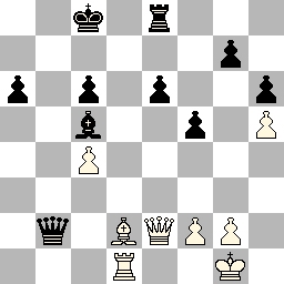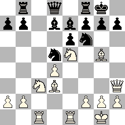 Bord 1: Ondergetekende, met wit aan bord 1, ondervond aan den lijve dat men in de Achterhoek veel te nuchter is om in incorrecte, lichtzinnige, grootsteedse offers te trappen. In deze stelling dacht ik in al mijn jeugdige overmoed: "Als ik nu 1.Lxg5 hxg 2.Pxg5 speel, hoe gaat zwart dan de pion op f7 dekken?" Mijn tegenstander gaf het toch eigenlijk niet zo moeilijk te vinden antwoord: 2... Pg4! Een andere mogelijkheid voor zwart (ook niet gecheckt dus) was 2... Df4! (en ik moet het paard op g5 terugspelen wil ik het niet verliezen). Hierna speelde ik nog wat door maar kon geen kansen meer creëren. Na 2... Pg4! volgde 3.f4 Ph6 (en f7 is gedekt).