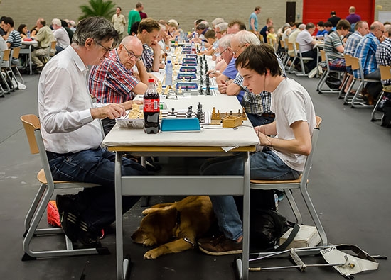 His name is Lucas de Jong and he has been visually impaired since his birth; at the age of five he completely lost his eyesight but nothing stopped him from having a regular life. He learned chess at the age of eight but started to play more seriously when he turned 15. Now he is the captain of the 5th team of SNB Nijmegen, his hometown in the Netherlands. I should mention that he is the only one with physical disabilities among his teammates.