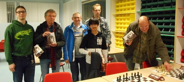 Een remise was genoeg voor de matchpunten. Michael had aan bord 1 ook een talent zitten, hij maakte een fout en ook zijn partij was verloren. Jan had een leuke pot al was zijn tegenstander talentvol in het hard meppen van stukken en op de klok rammen. Jan vond dat niet OK en zette zijn stukken haarscherp neer. En jawel, net een zet die tegenpartij niet zou moeten doen gebeurde wel, daarmee won Jan. 4-2 voor ons, ik was blij dat het ons gelukt was.