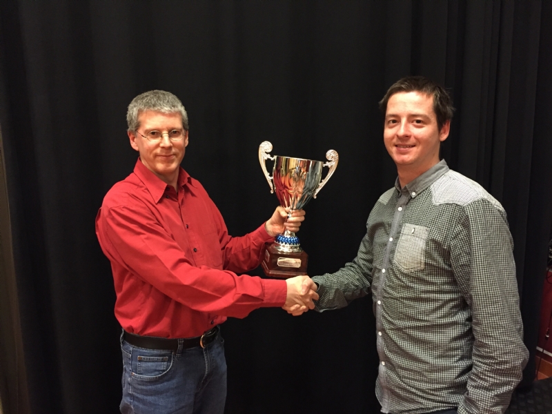 Heel sterk is hier 27.Pd4! wat leidt tot een winnend eindspel voor Wit. Jelle besloot echter vrijwel à tempo de stelling op de koningsvleugel op te blazen met 27.g6, ook een goede zet die mede dankzij Lucas' tijdnood uiterst effectief bleek: 27... hxg6?? 28.hxg6 Le6 29.Pg5 Le7 30.gxf7+ Lxf7 31.Dxf7+ en Zwart gaf op. Als hij door had gehad dat het na 31.Dxf7+ Kh8 32.Dh5+ Kg8 33.Dh7# mat was, had hij zijn tegenstander het plezier van het mat nog wel gegund. De overwinning was hoe dan ook volledig terecht, en zo kreeg de beker met Jelle van Deemen een waardige opvolger voor Bram Rijkschroeff.